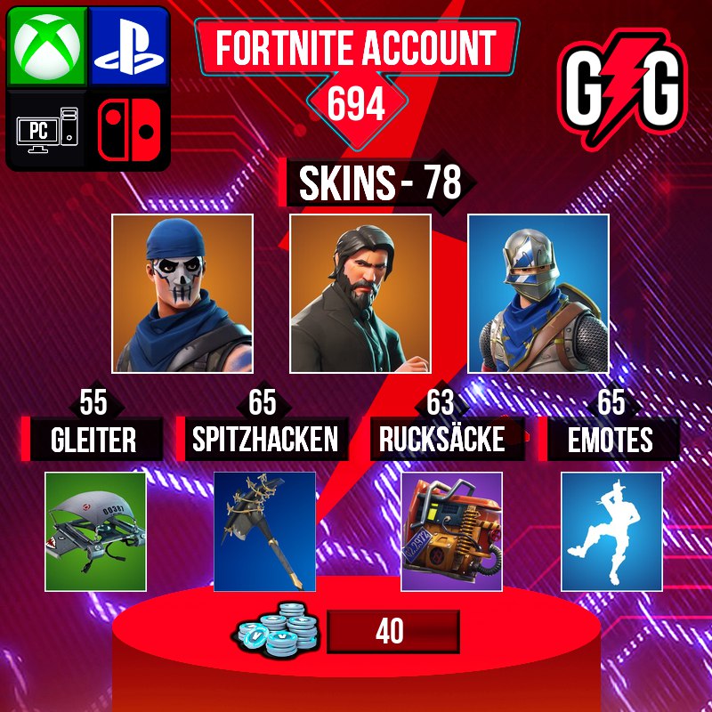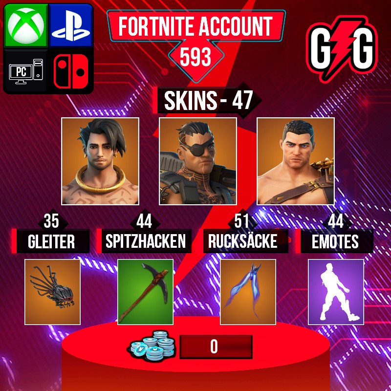 Unsere Fortnite OG Accounts beinhalten nicht nur außergewöhnliche Skins, sondern auch seltene Pickaxes, Gleiter und andere kosmetische Items, die in der heutigen Fortnite-Welt oft sehr begehrt sind.