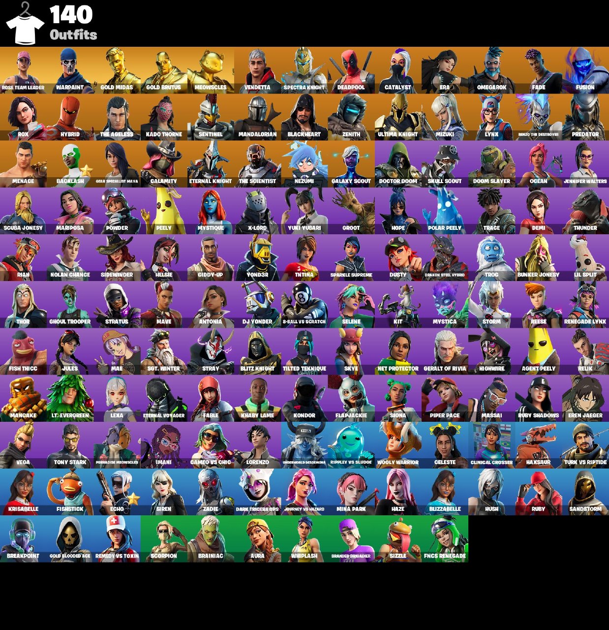 Der Account enthält die folgenden Inhalte: