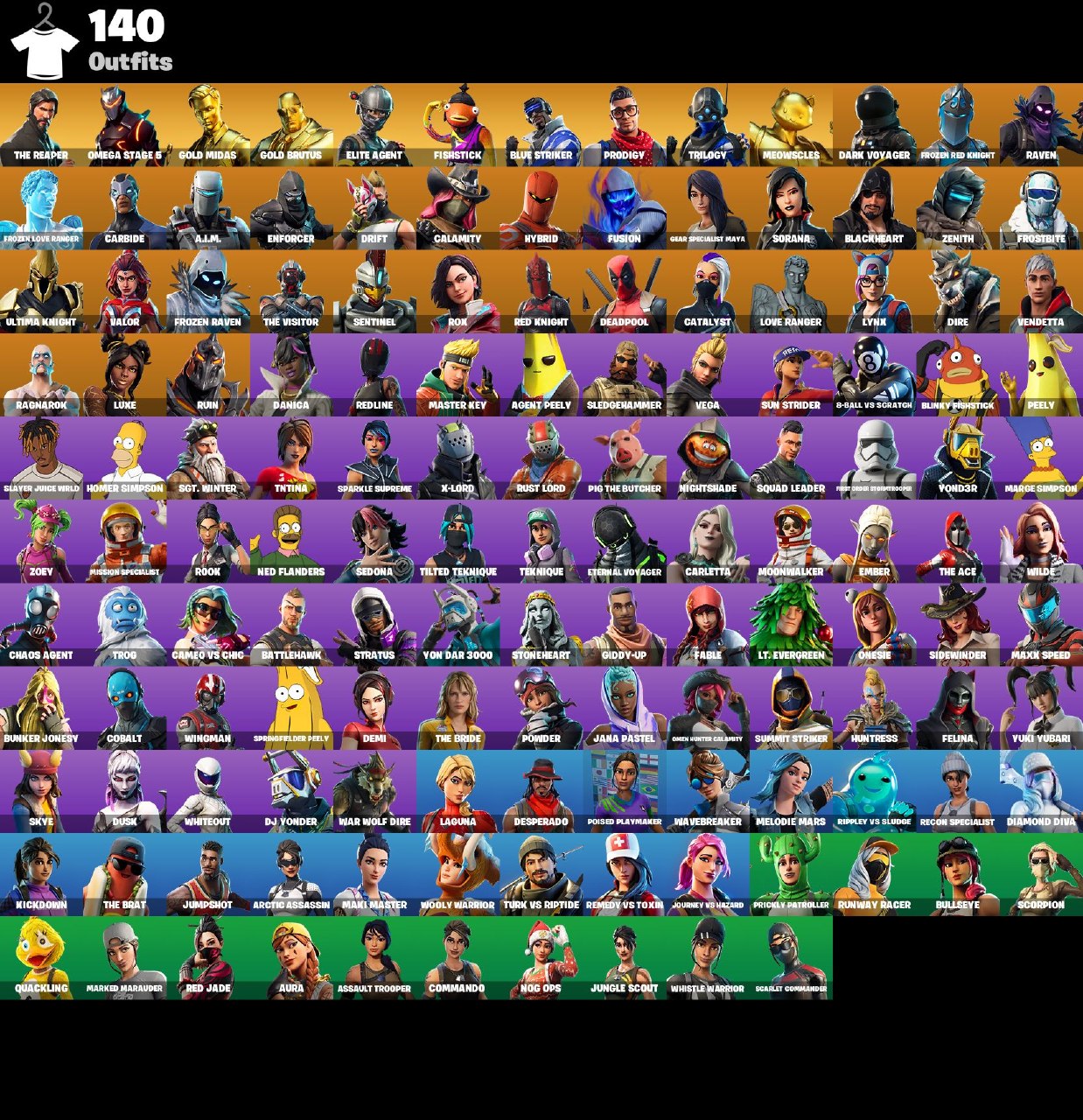 Fortnite OG Account – 140 Skins | The Reaper | Omega Stage 5 | Gold Midas