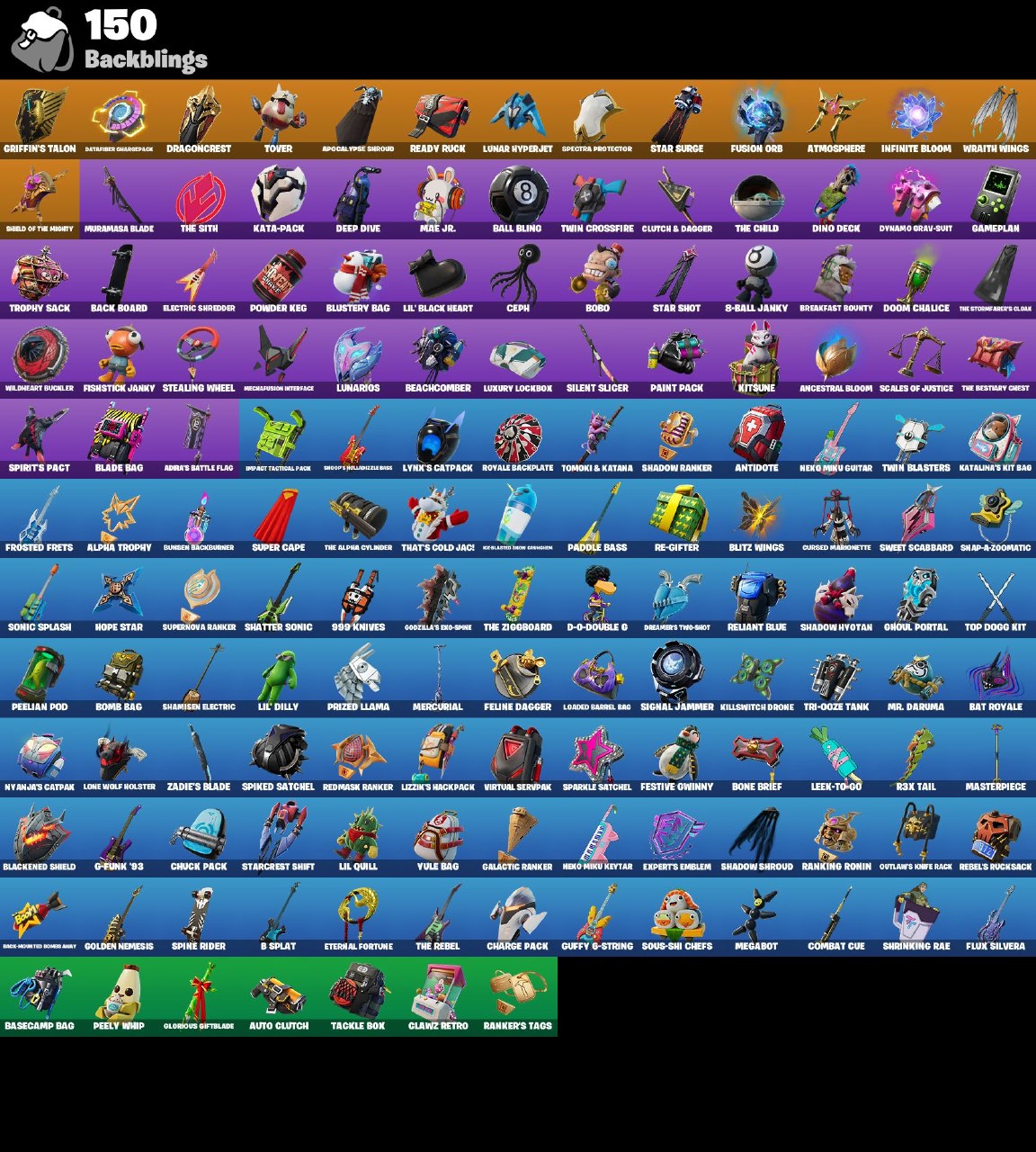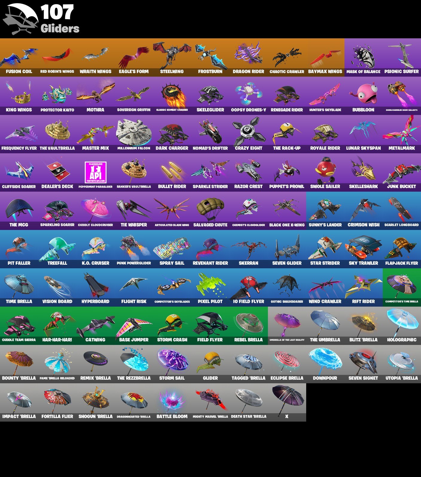 • Glow | Trilogy | Snap || backpack: Griffin’s Talon | pickaxe: Pneumatic Twin | emote: Punching Practice | glider: Fusion Coil